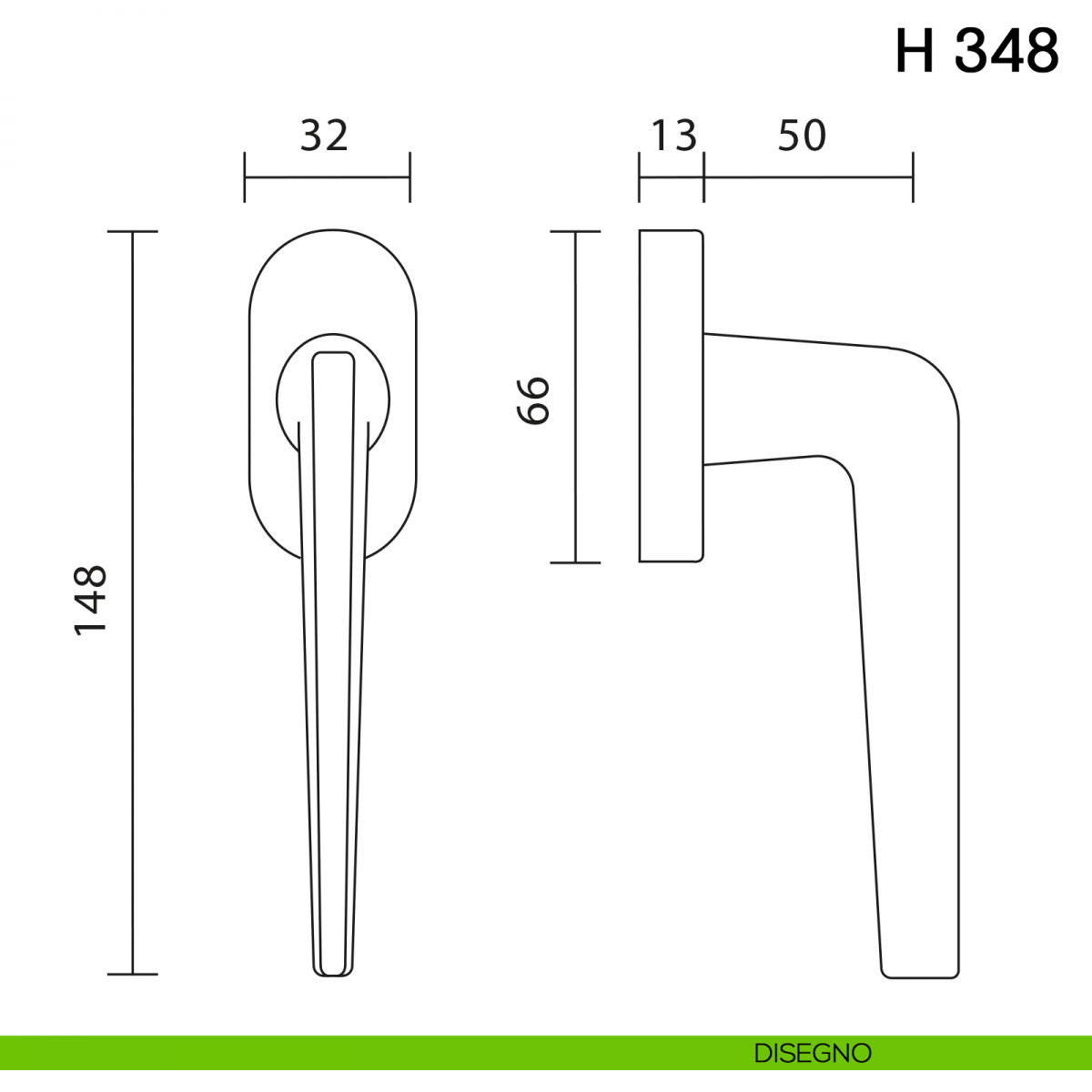 Maniglia per finestra martellina DK H 348 Valli collezione Fusital.