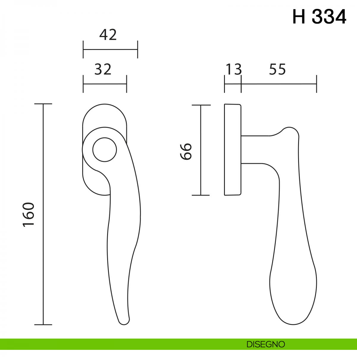 Maniglia per finestra martellina DK H 334 Valli collezione Fusital.