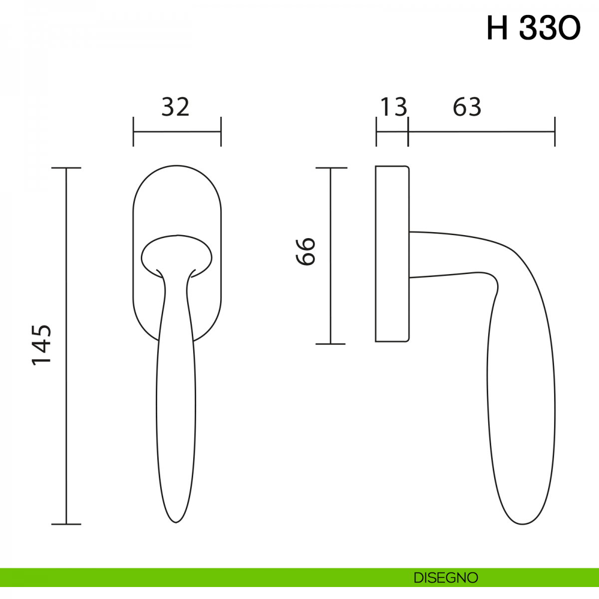 Maniglia per finestra martellina DK H 330 Valli collezione Fusital.