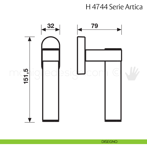 Maniglia per finestra martellina DK H 4744 Artica VCasa Valli & Valli.