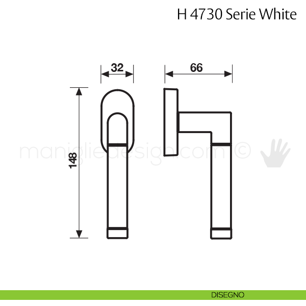 Maniglia per finestra martellina DK H 4730 White Valli & Valli.