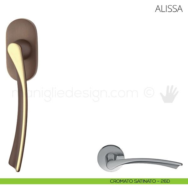 Alissa Mandelli viene proposta anche nella variante maniglia per interni e cremonese per finestre. Scopri tutte le versione della maniglia Alissa per completare con stile il tuo arredamento.