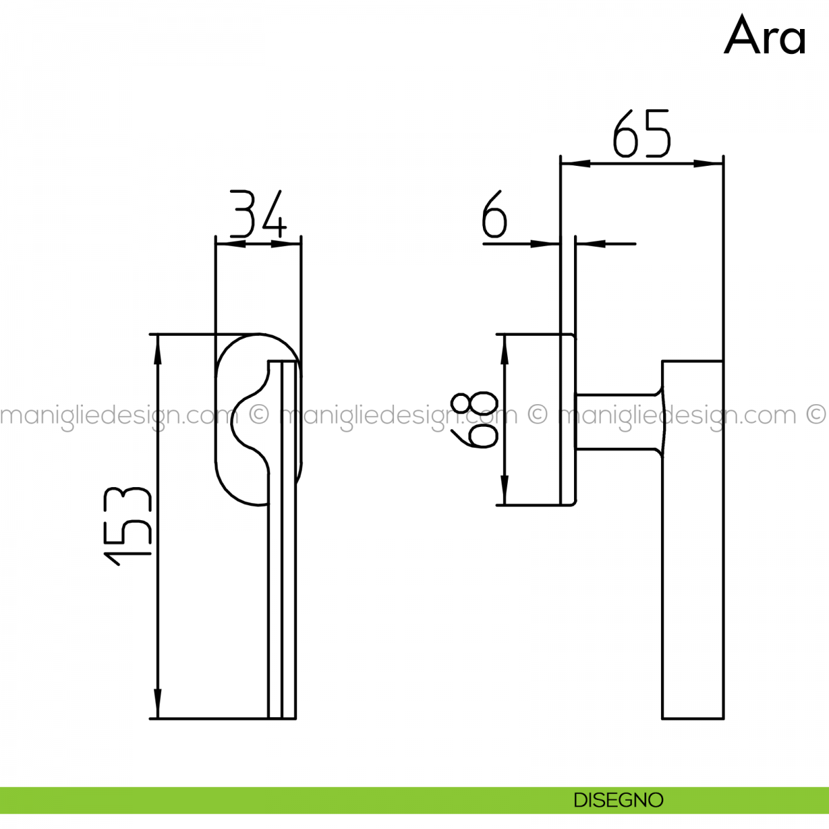 Officine Mandelli presta particolare attenzione alla ricerca e allo sviluppo dei propri prodotti. Con questa filosofia di progetto nasce la Ara, una maniglia moderna disegnata dal centro stile Mandelli. La maniglia per finestra Ara appartiene alla linea di maniglie in ottone, un modello semplice, lineare, ma al tempo stesso innovativo e contemporaneo, adotto a poter interpretare le ultime tendenze del mondo del design.