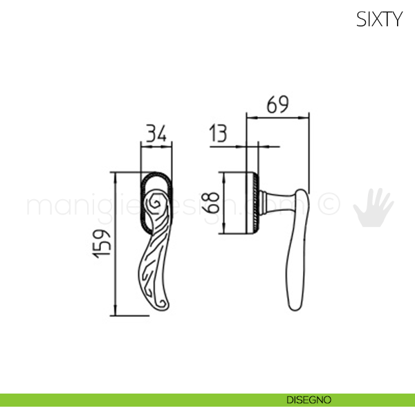 Maniglia per finestra martellina DK Sixty Mandelli.