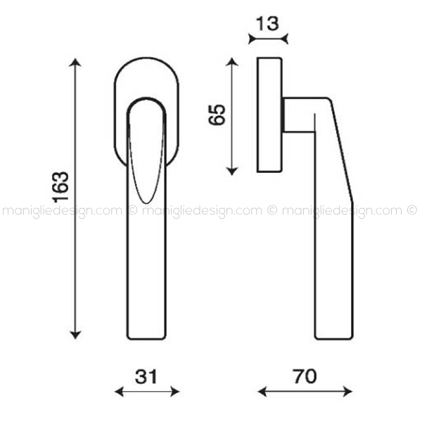 Maniglia martellina DK per finestra Cut Kleis.