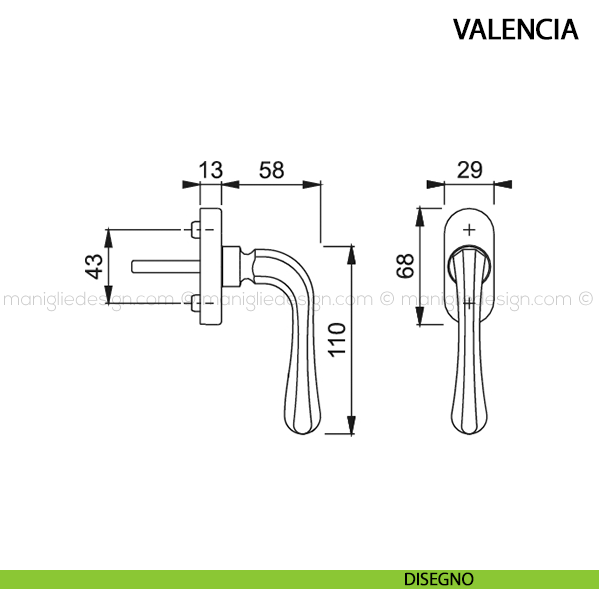 Maniglia per finestra martellina DK Valencia Hoppe.