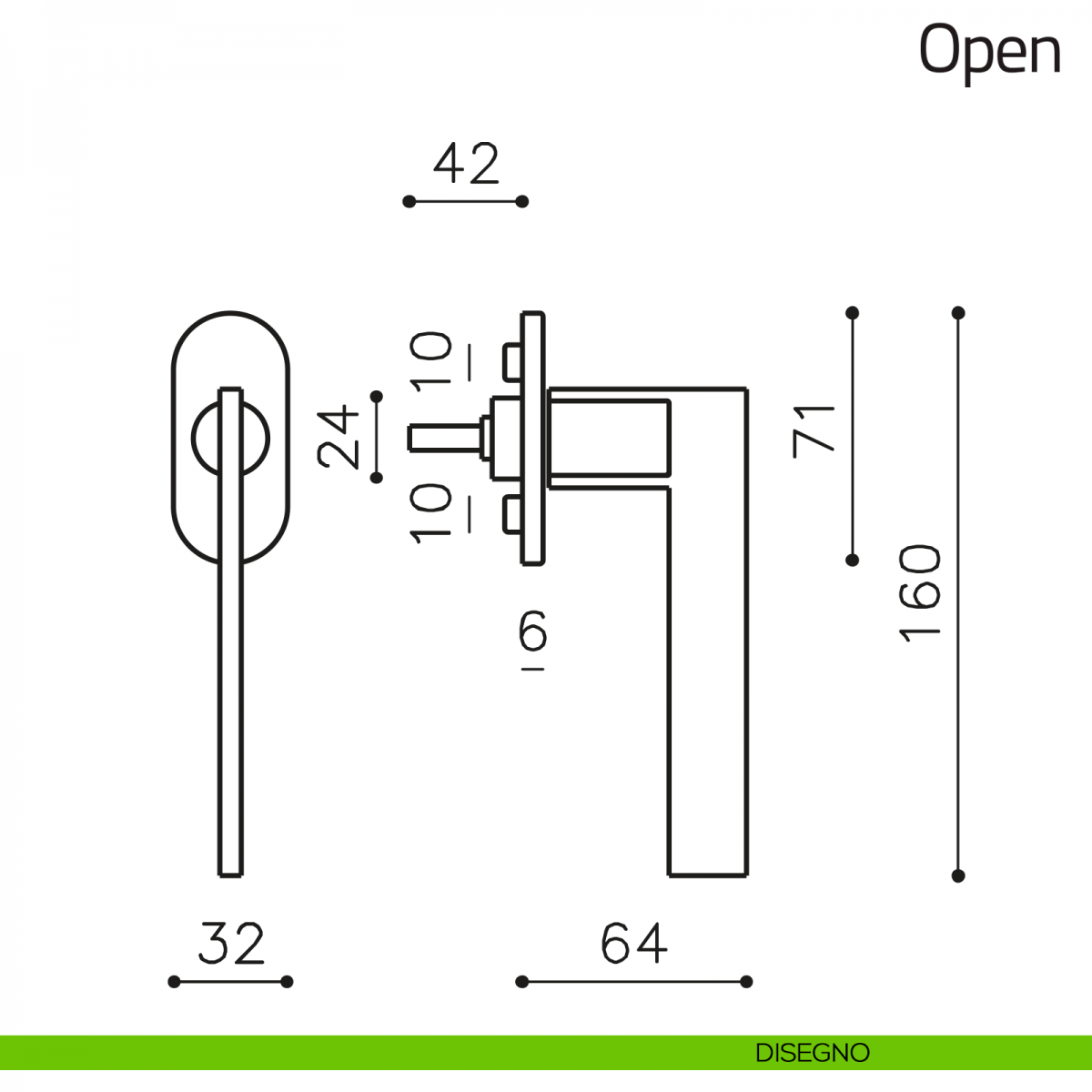 Maniglia per finestra martellina DK Open Olivari bassa.