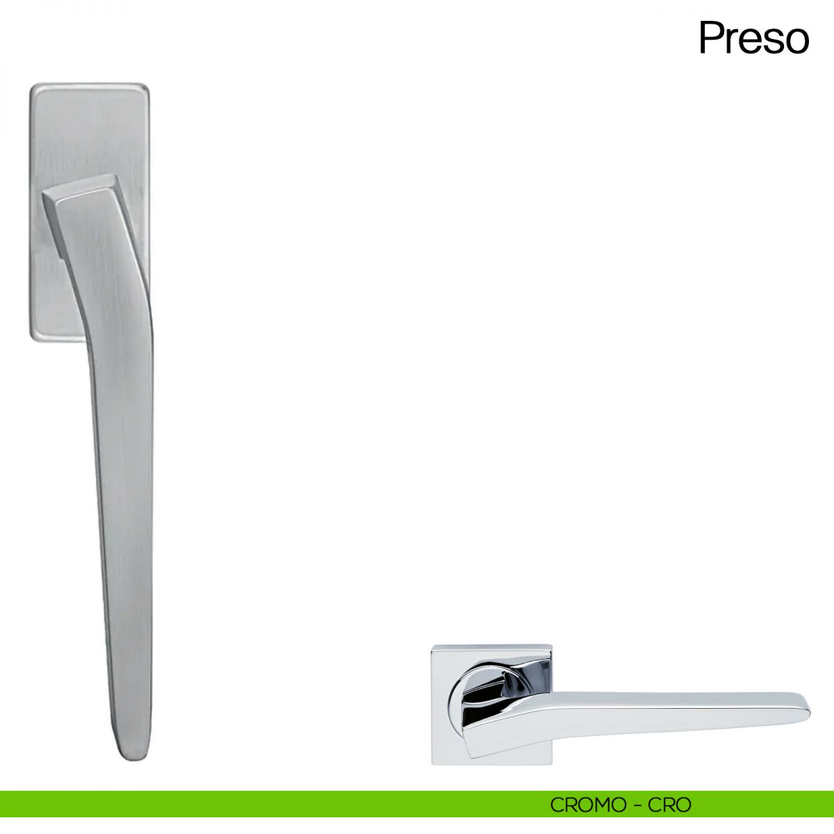 Maniglia per porta Preso Manital su rosetta quadrata.