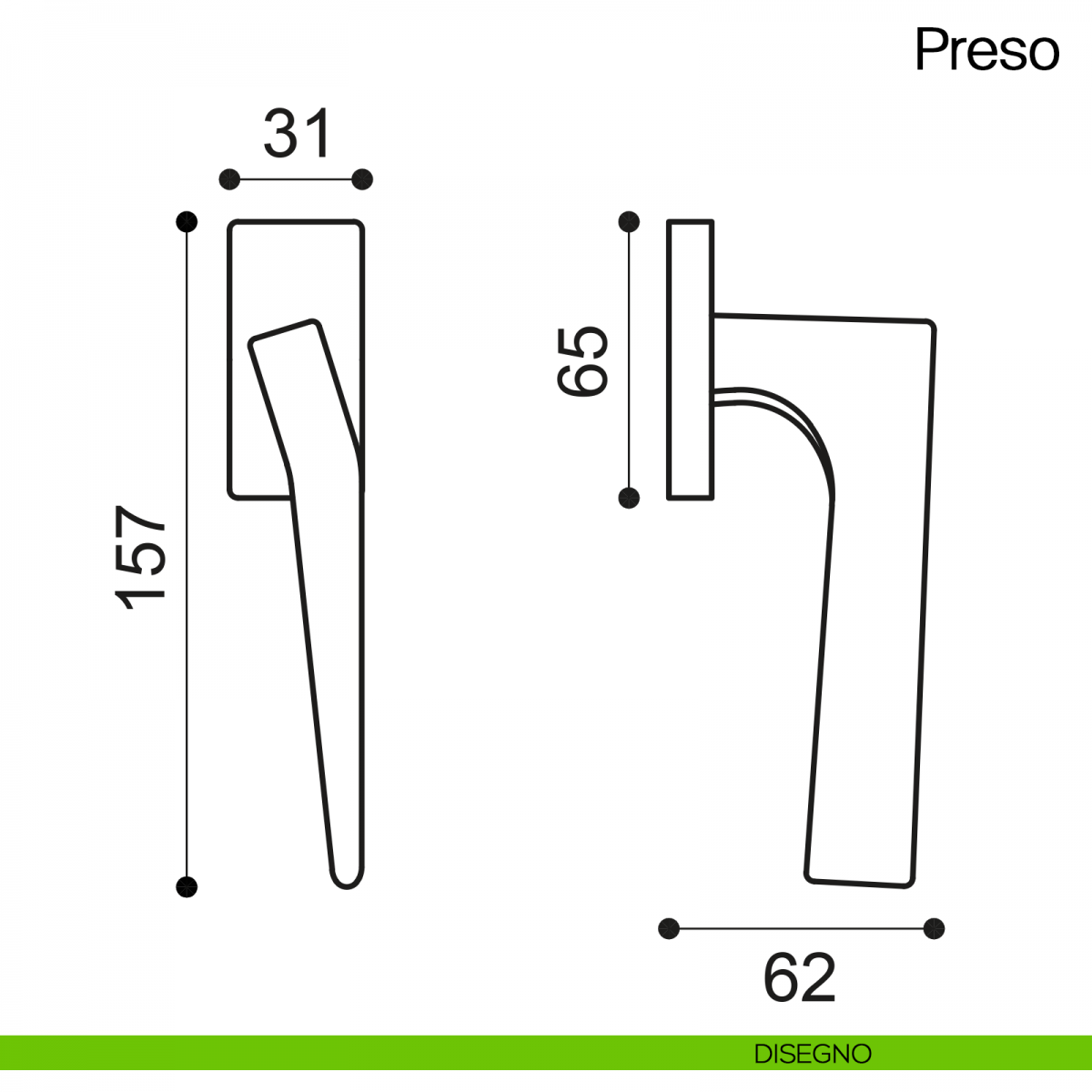 Maniglia martellina DK per finestra Preso Manital. Design by Mario Mazzer.
