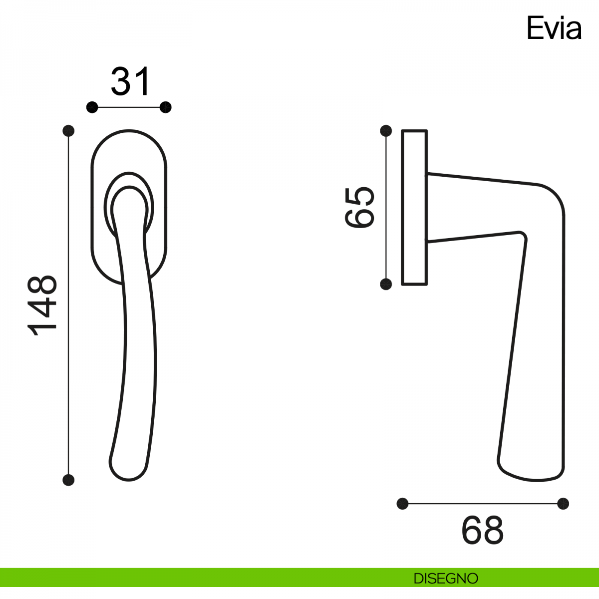 Maniglia martellina DK per finestra Evia Manital. Design by Pedrizzetti & Associati.