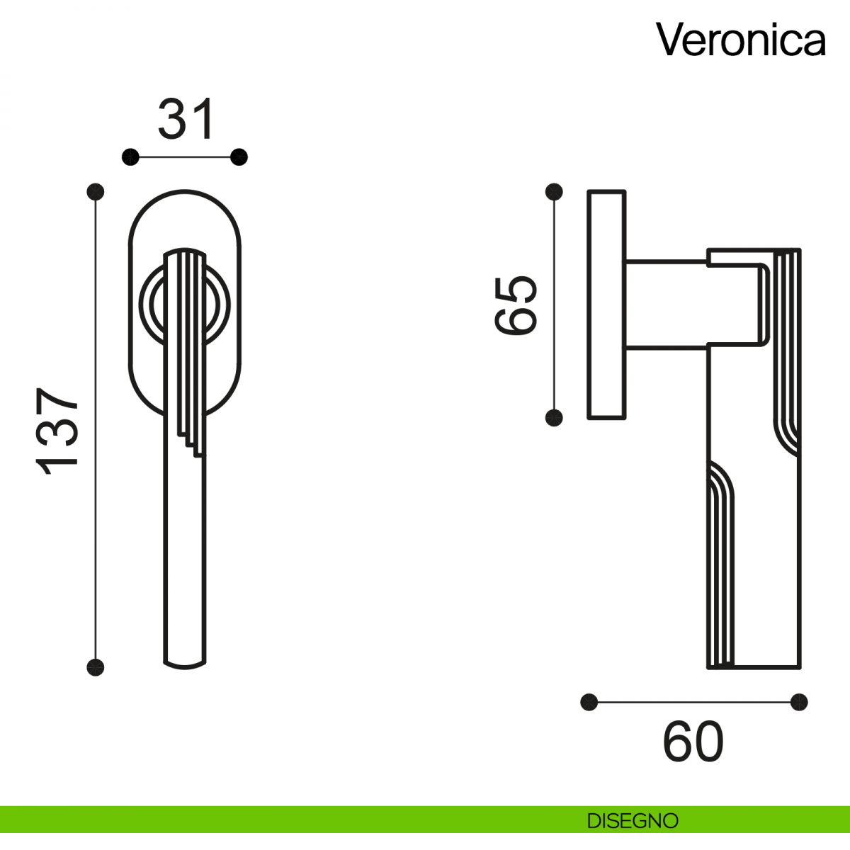 Maniglia martellina DK per finestra Veronica Manital. Design by Studio Manital.