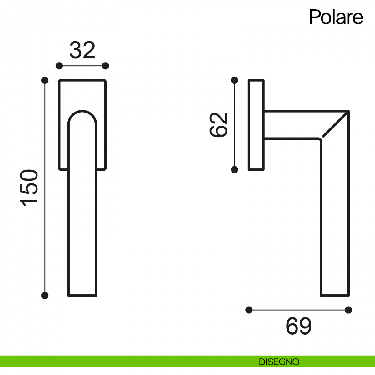 Maniglia martellina DK per finestra Polare Manital. Design by Studio Manital.