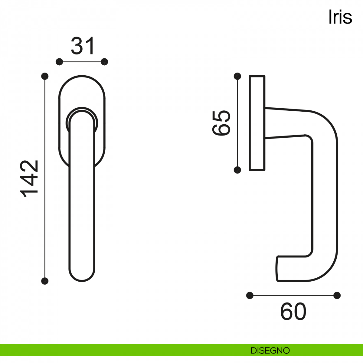 5aniglia martellina DK per finestra Iris Manital. Design by Studio Manital.
