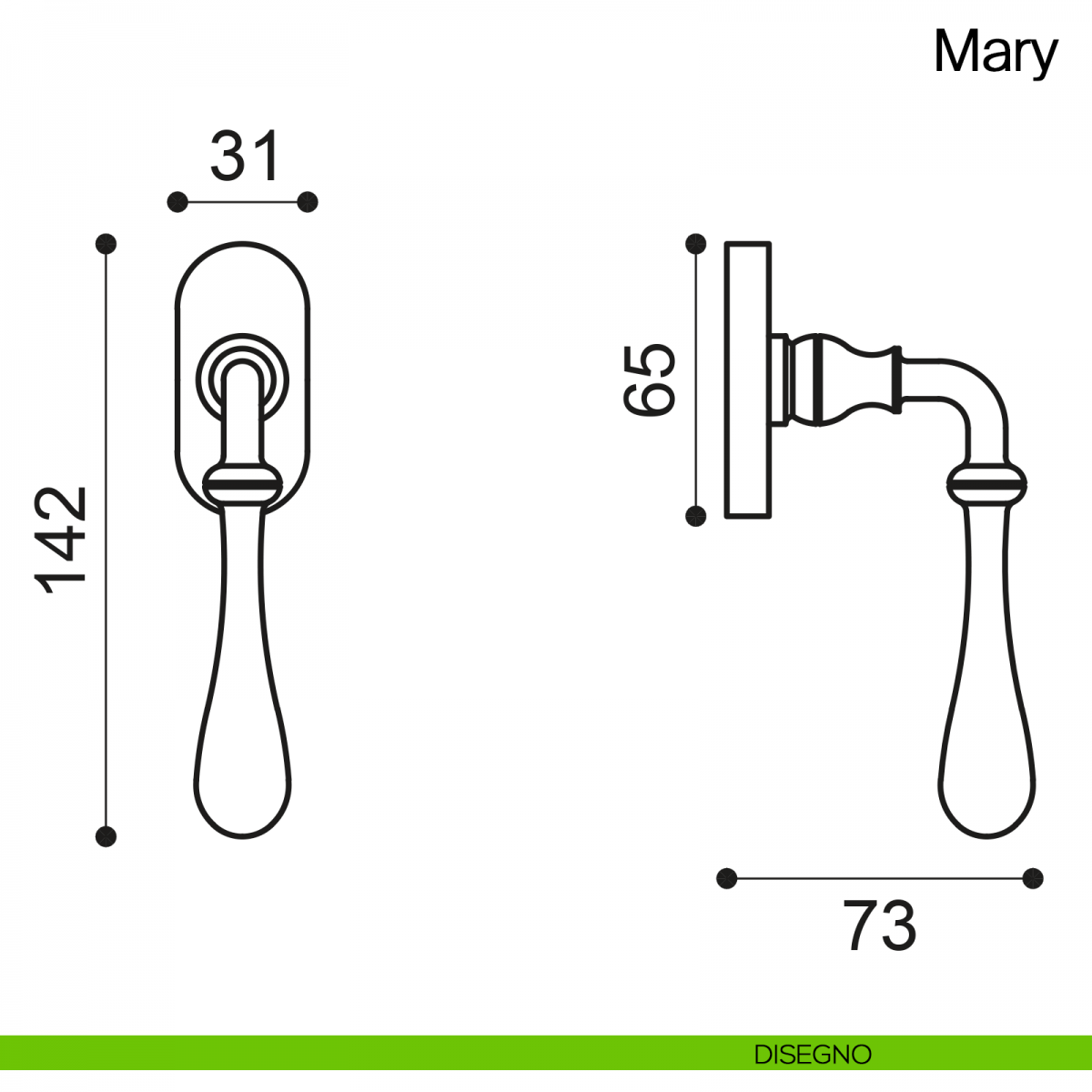 Maniglia martellina DK per finestra Mary Manital.