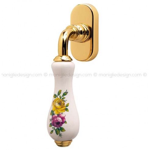Maniglia per finestra martellina DK Ottocento Comit porcellana bianca fiore orizzontale
