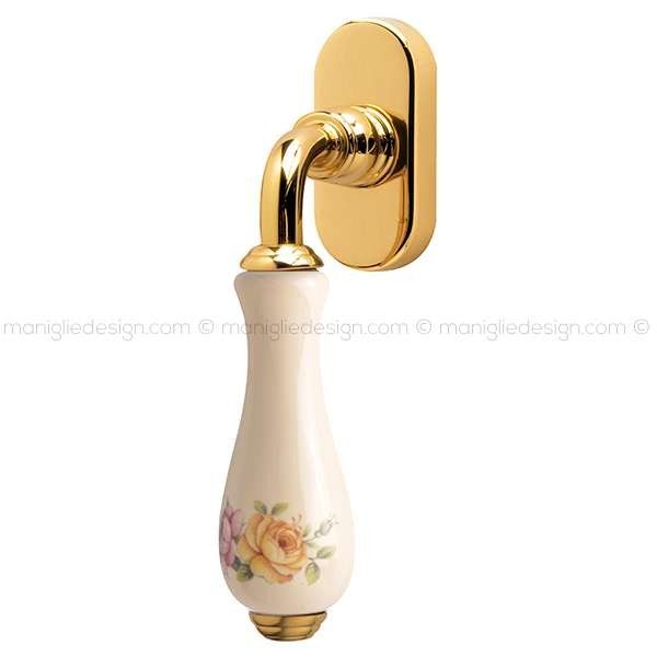Maniglia per finestra martellina DK Ottocento Comit porcellana avorio fiore verticale