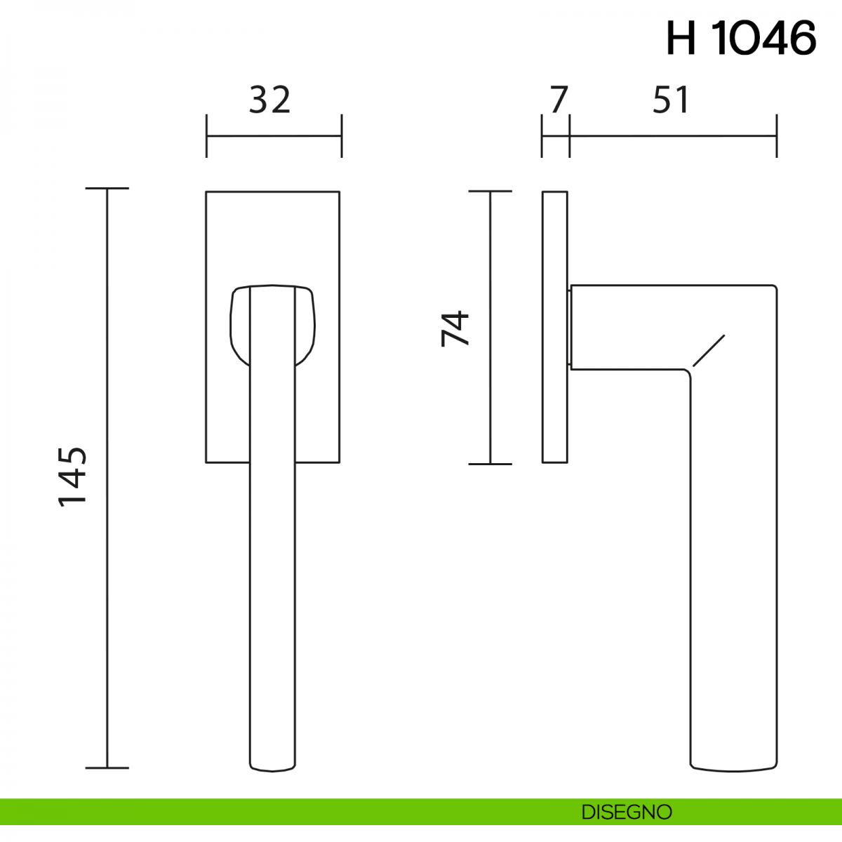 Maniglia per finestra martellina DK H 1046 Valli collezione Lab con rosetta fine.