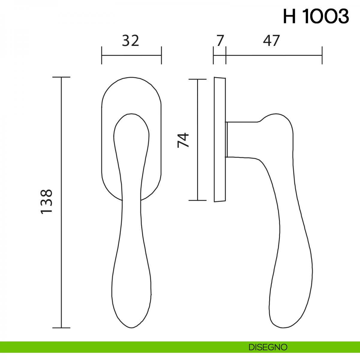 Maniglia per finestra martellina DK H 1003 Valli collezione Fusital con rosetta fine.
