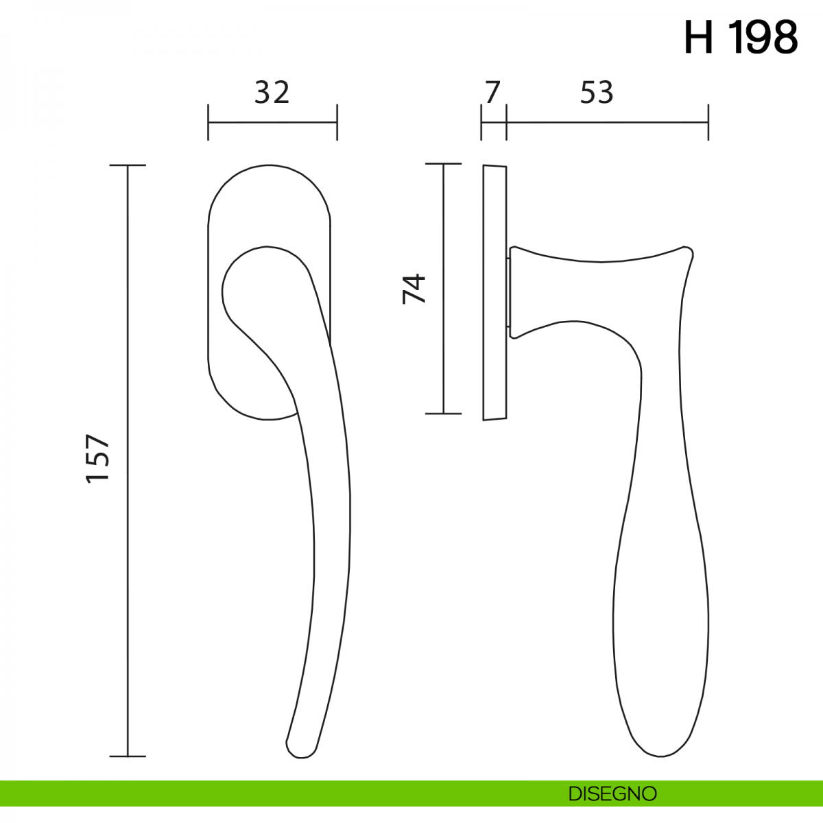 Maniglia per finestra martellina DK H 198 Valli collezione Fusital.