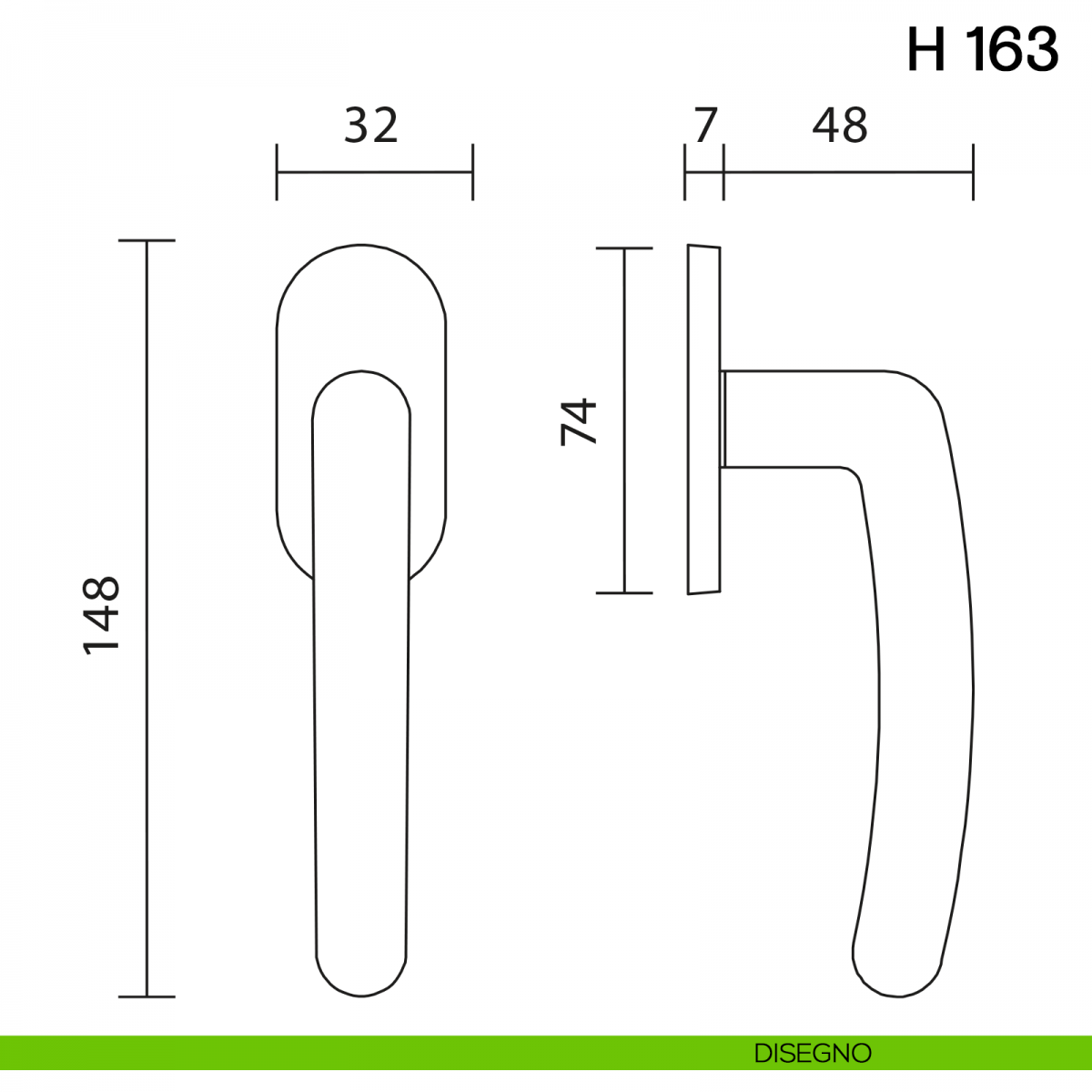 Maniglia per finestra martellina DK H 163 Valli collezione Lab con rosetta fine. Design by Valli Workshop.