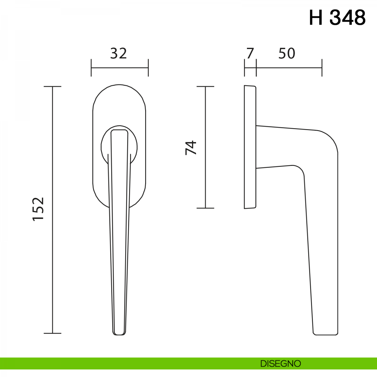 Maniglia per finestra martellina DK H 348 Valli collezione Fusital con rosetta fine.