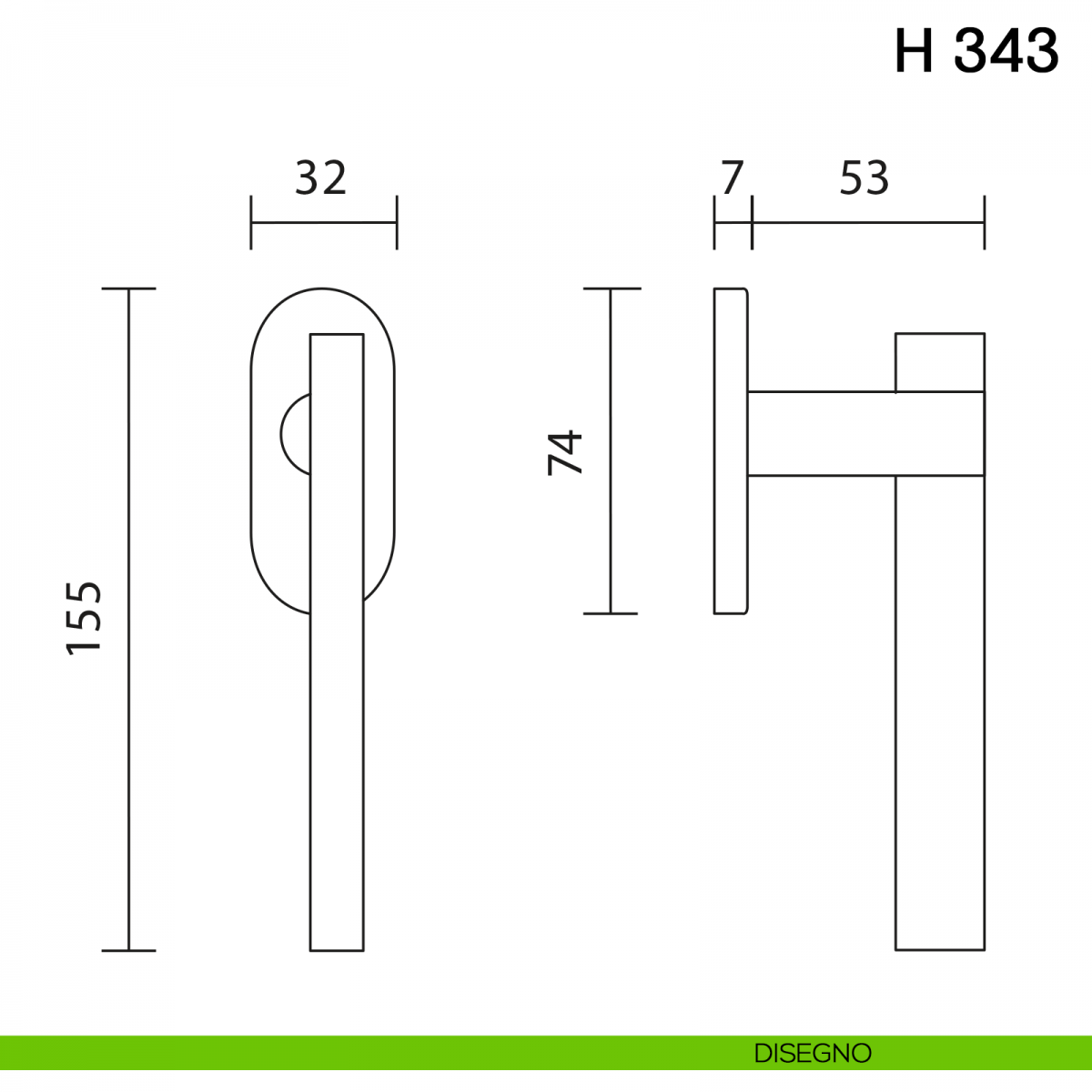 Maniglia per finestra martellina DK H 343 Valli collezione Fusital.