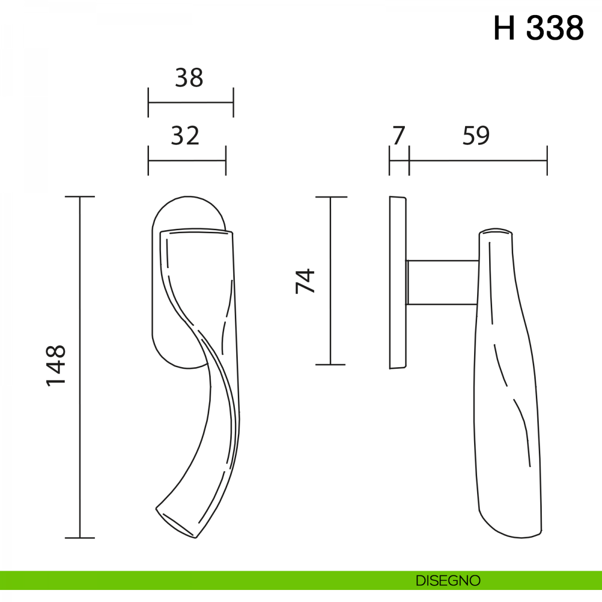 Maniglia per finestra martellina DK H 338 Valli collezione Fusital.