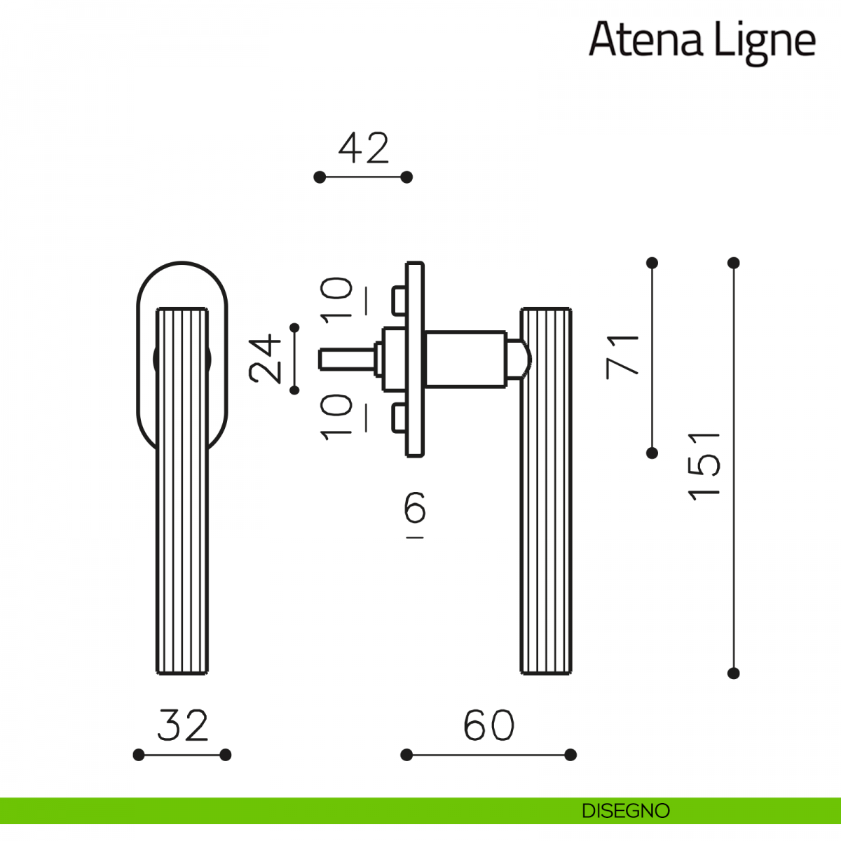 Maniglia per finestra martellina DK Atena Ligne Olivari bassa. Design by Studio Olivari.