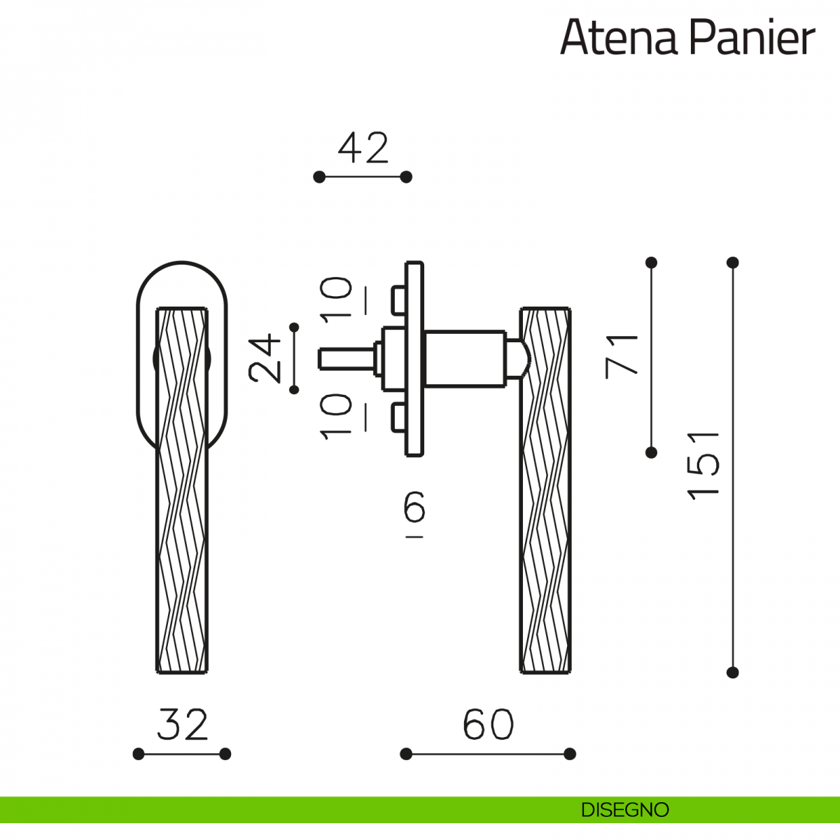 Maniglia per finestra martellina DK Atena Panier Olivari bassa. Design by Studio Olivari.