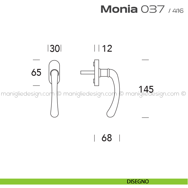Maniglia per finestra martellina DK 37 Monia Reguitti. Design by Studio Reguitti.