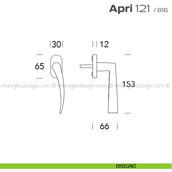 Maniglia per finestra martellina DK 121 Apri T. Reguitti. Design by Studio Reguitti.