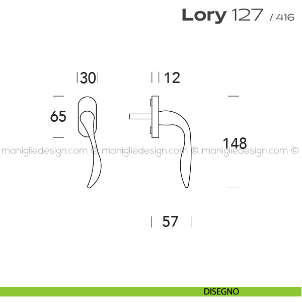 Maniglia per finestra martellina DK 127 Lory Reguitti. Design by Studio Reguitti.