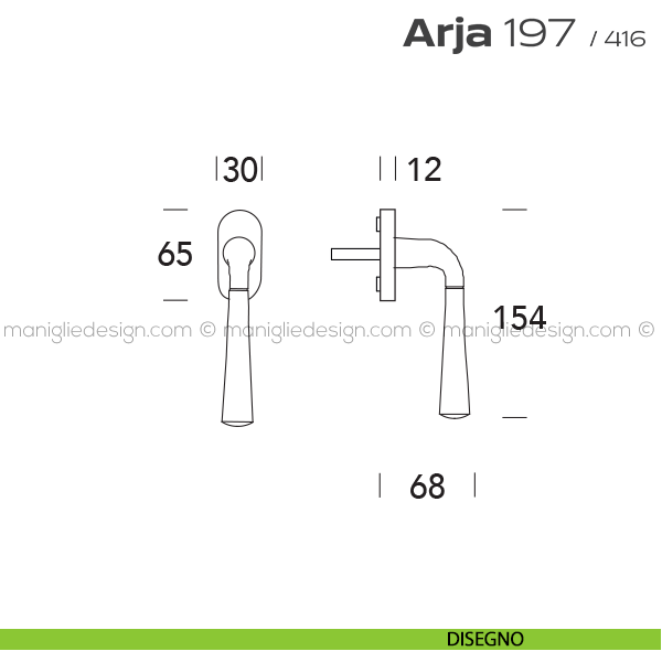 Maniglia per finestra martellina DK 197 Arja Reguitti.