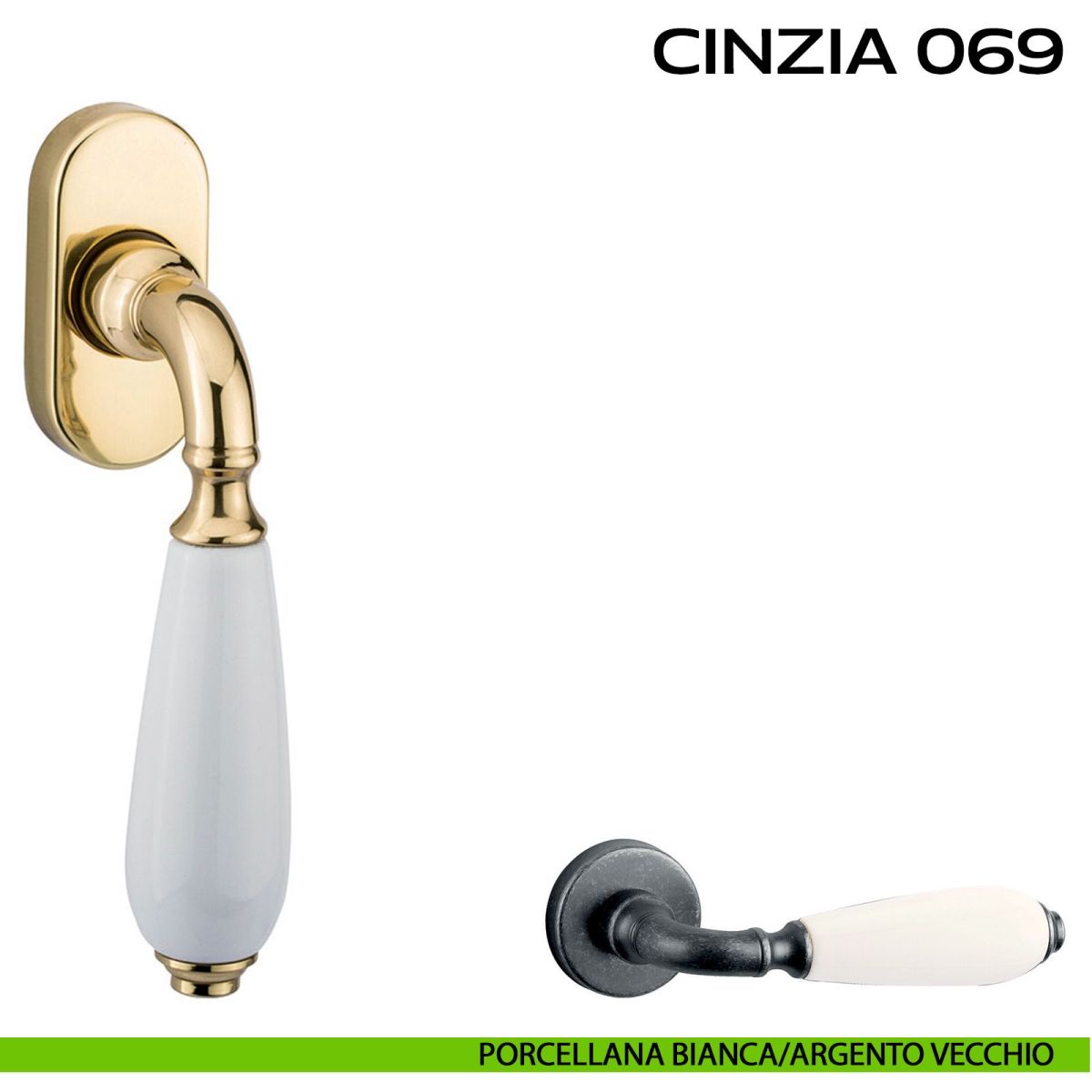 Lo studio di progettazione interno all'azienda Reguitti progetta una nuova serie di maniglie per finestre chiamata 069 Cinzia Reguitti. La linea Vintage è la collezione di maniglie classiche Reguitti. Cinzia è la maniglia in ottone e porcellana che combina pregiate finiture e finissimi colori. Pregiati inserti richiamano lo stile dei primi '900, ideali per arredare gli ambienti con uno spiccato gusto classico.