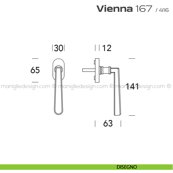 Maniglia martellina DK per finestra 167 Vienna Reguitti. Design by Studio Reguitti.