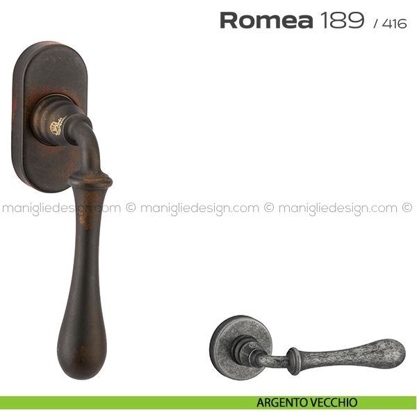 Lo studio di progettazione interno all'azienda Reguitti progetta una nuova serie di maniglie per finestre chiamata 189 Romea Reguitti. La linea Vintage è la collezione di maniglie classiche Reguitti. Romea narra di antichi casali, di castelli medievali, di fanciulli da salvare e pellegrini da guidare. Un design nostalgico per una maniglia di classe che trova massima espressione in ristrutturazione di classico charme.