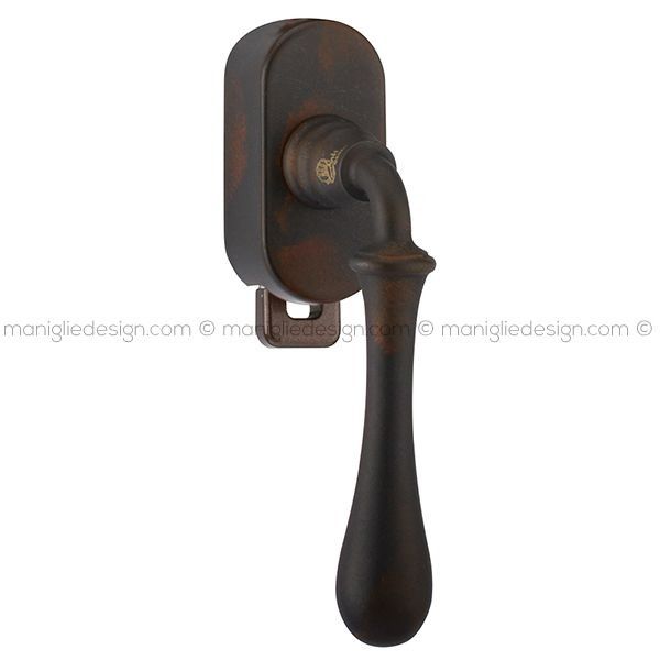 Maniglia per finestra martellina DK con chiave su placca 189 Romea Reguitti.