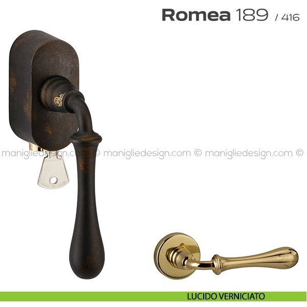 Maniglia per finestra martellina DK con chiave su placca 189 Romea Reguitti.