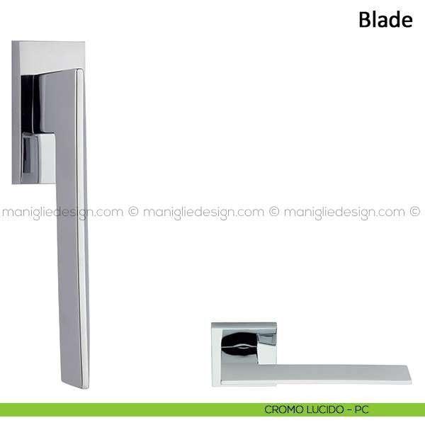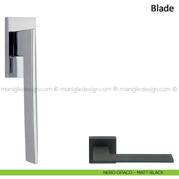 Maniglia per porta interna Blade Frascio con rosetta e bocchetta quadrata.