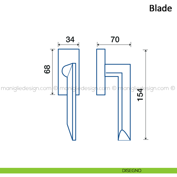 Maniglia per finestra martellina DK Blade Frascio. Design by Brian Sironi.