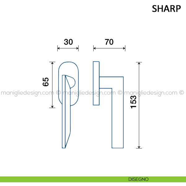 Maniglia per finestra martellina DK Sharp Frascio. Design by Brian Sironi.