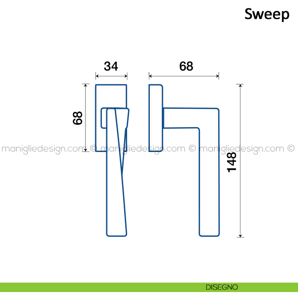 Maniglia per finestra martellina DK Sweep Frascio. Design by Roberto Semprini.
