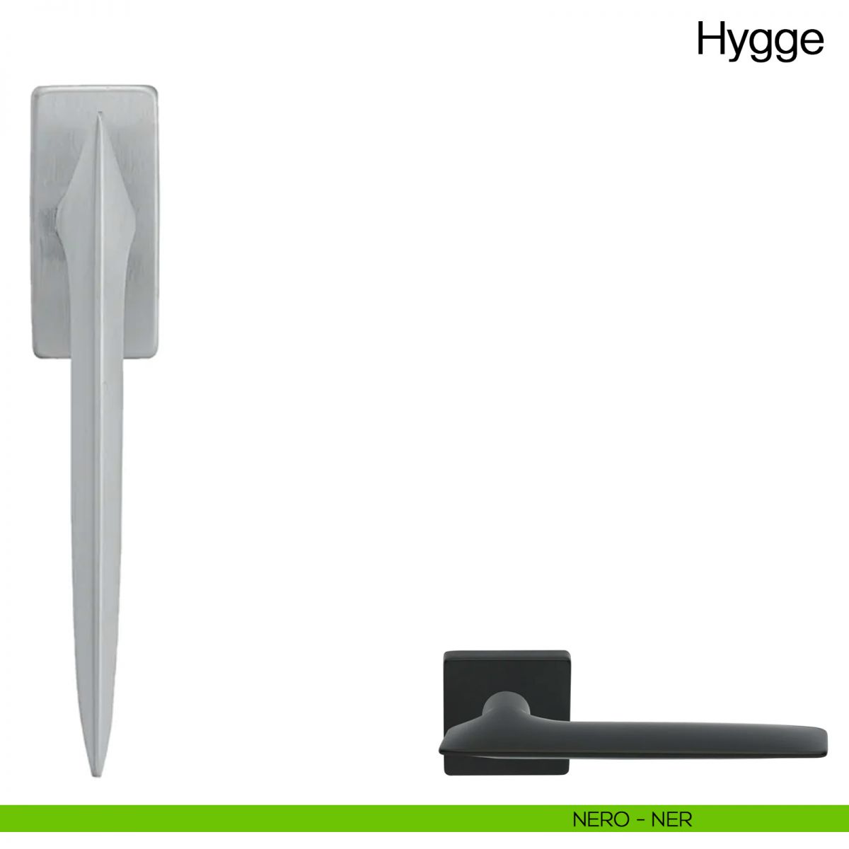 Maniglia per porta Hygge Manital su rosetta quadrata.