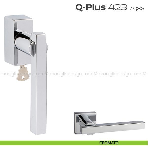 Maniglia per finestra martellina DK con chiave su placca 423 Q-Plus Reguitti. Design by Studio Reguitti.
