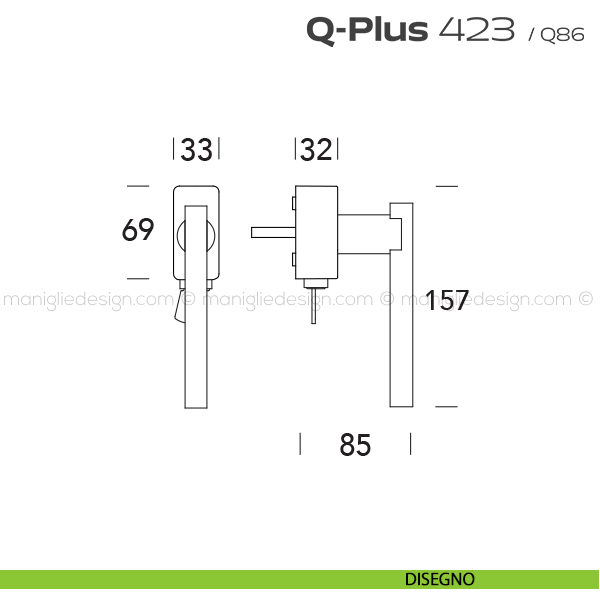 Lo studio di progettazione interno all'azienda Reguitti progetta una nuova serie di maniglie per finestre chiamata 423 Q-Plus Reguitti. Un insieme ragionato di forme geometriche elementari definisce il rigore razionalista di Q-PLUS, una maniglia che cattura l'occhio per il design ridotto ai minimi termini, e la mano per la presa salda e precisa.