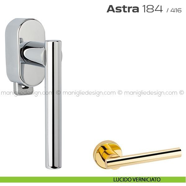 Lo studio di progettazione interno all'azienda Reguitti disegna una nuova serie di maniglie per interni chiamata 184 Astra Reguitti. "Per aspera ad astra", attraverso le asperità si giunge alle stelle. Così, nella maniglia Astra, attraverso la spigolosità e il rigore dei volumi geometrici si aggiunge una stella nel firmamento del design.