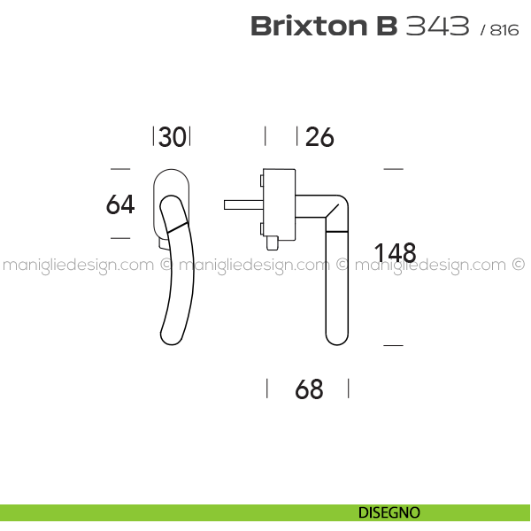 Lo studio di progettazione interno all'azienda Reguitti disegna una nuova serie di maniglie per interni chiamata 343 Brixton B Reguitti. La forma semplice leggermente ricurva di Brixton B, nonchè il minimalismo concettuale che ne accompagna lo sviluppo, è chiaro richiamo all'atmosfera sobria che avvolge l'anima di vivace multiculturalismo dell'omonimo quartiere londinese.