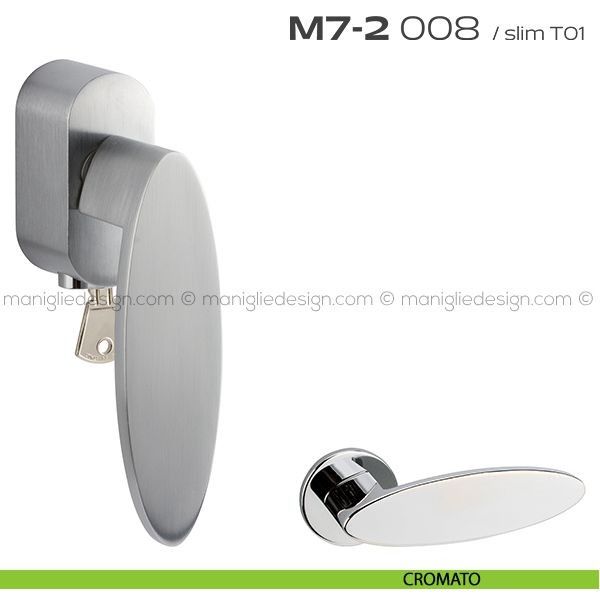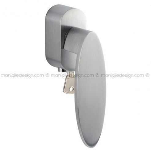 Maniglia per finestra martellina DK con chiave su placca 008 M7-2 Reguitti. Design by GGA - Gardini e Gibertini Architetti.
