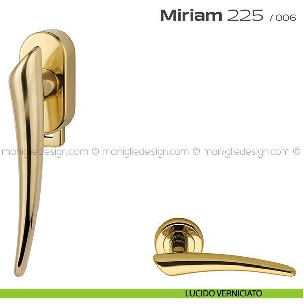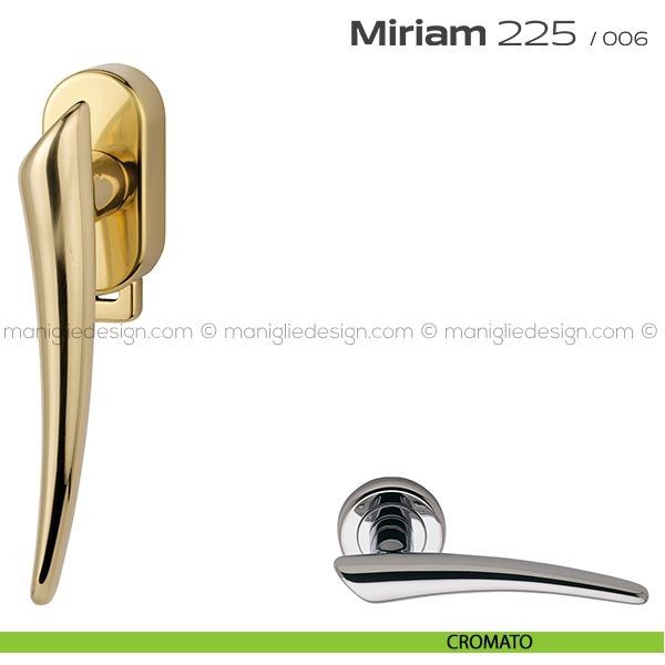 Lo studio di progettazione interno all'azienda Reguitti disegna una nuova serie di maniglie per finestre chiamata 225 Miriam Reguitti, un prodotto dalla linea moderna e decisa, un deciso e dinamico gioco formale, per esaltare al meglio gli ambienti più classici e sofisticati. Miriam rappresenta il piacevole contrasto fra il gusto di oggi e il romantico fascino del mondo antico.