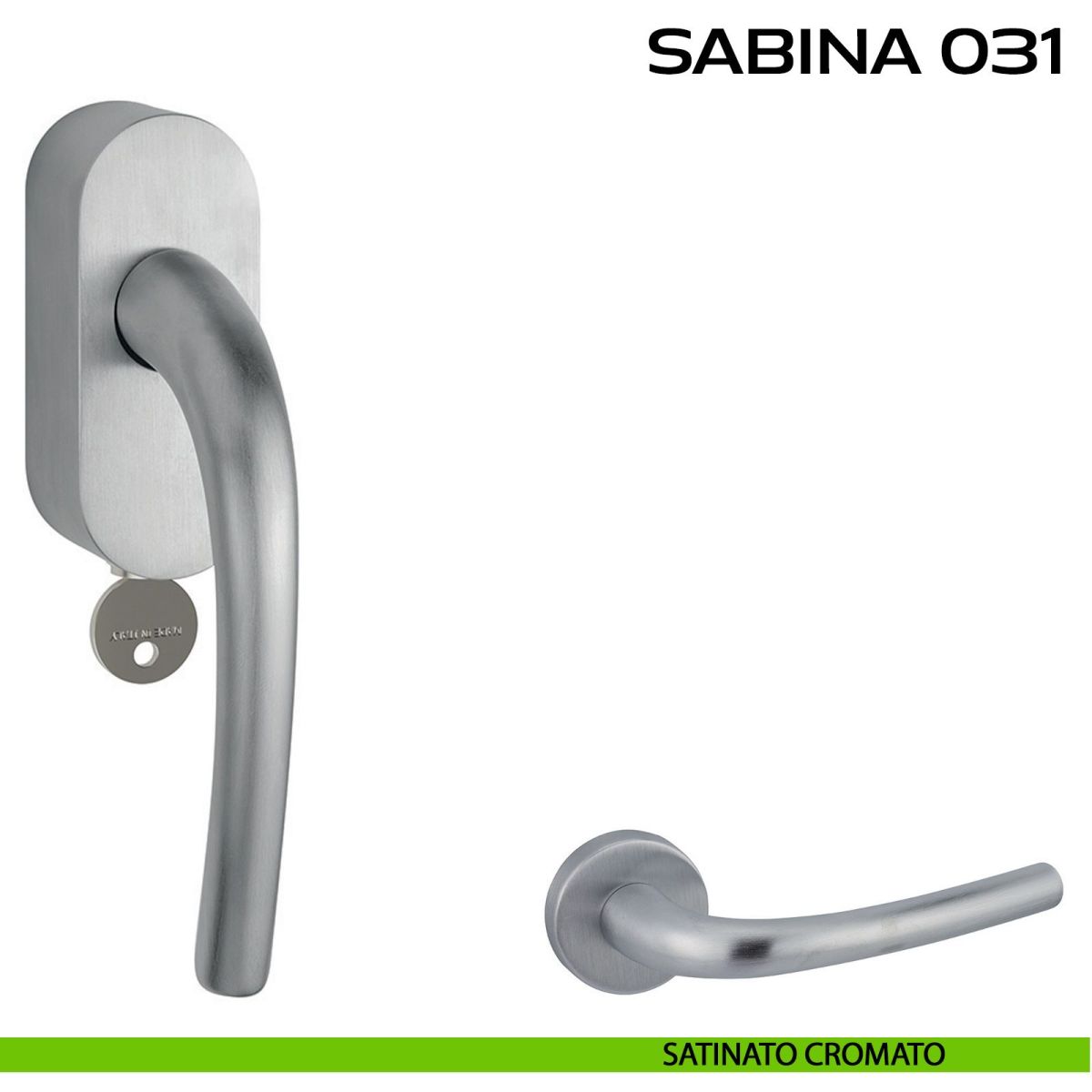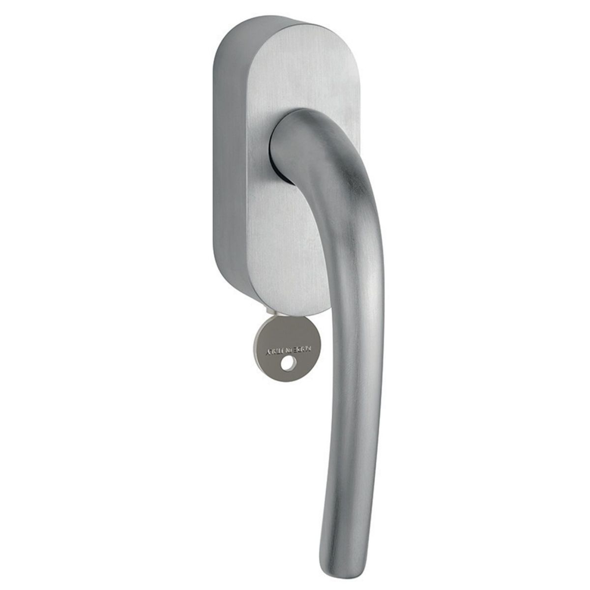 Maniglia per finestra martellina DK con chiave su placca Sabina 031 Reguitti. Design by Studio Reguitti.